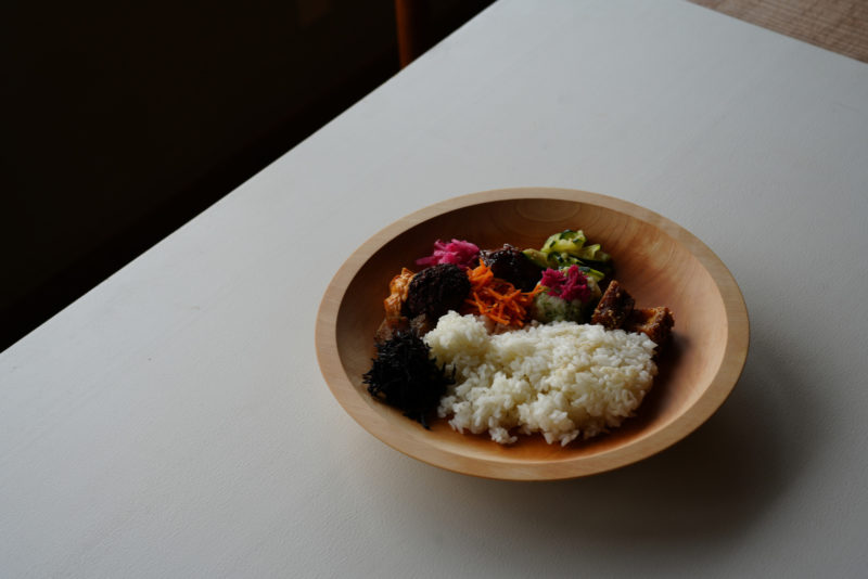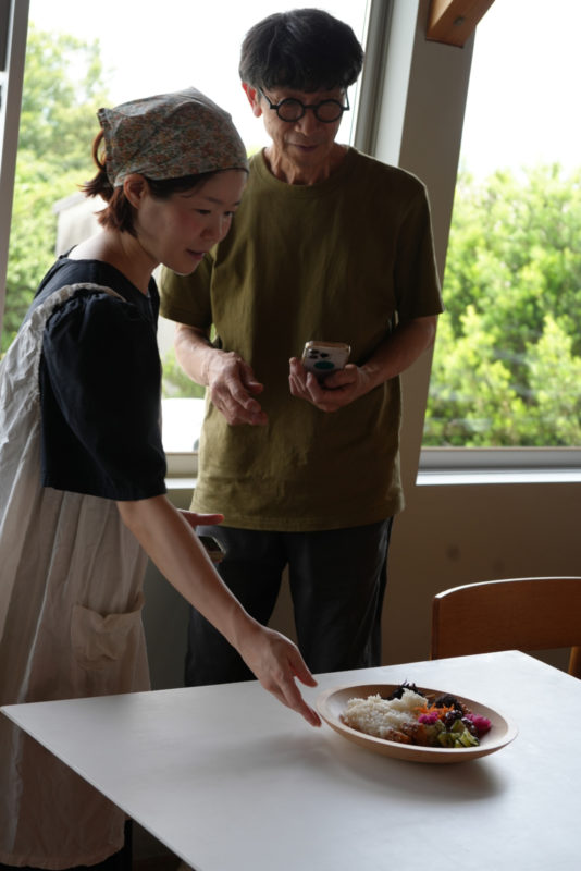 In 1995, he established his workshop and residence in Yoshii Town, starting to create wooden items such as trays and cutting boards.Currently, alongside his daughter’s husband, he crafts wooden tools and furniture while the family also runs the shop for wooden tools and cafe called “jingoro“.