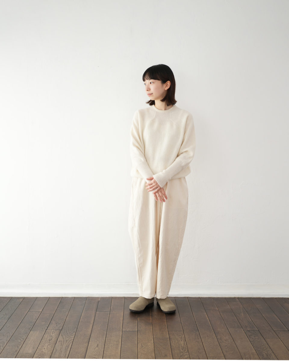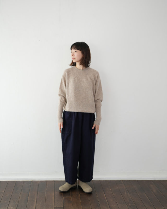 パンツは新しい形。裾が細くなったスッキリシルエットです。