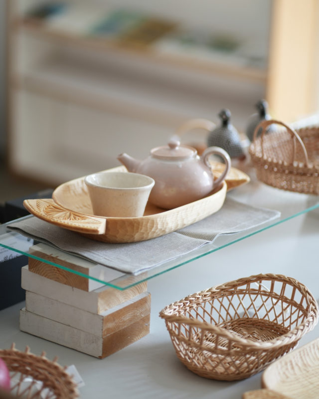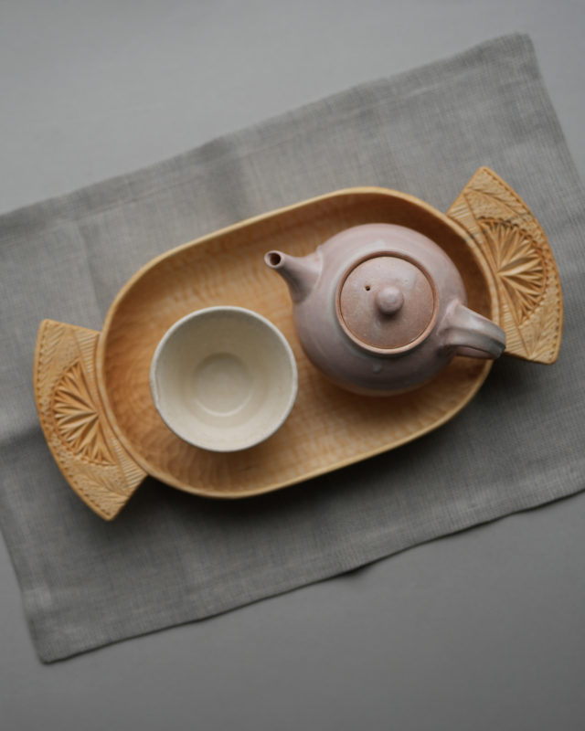 ゲルダウッドトレイとリネンのティーマット
