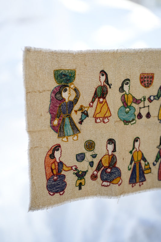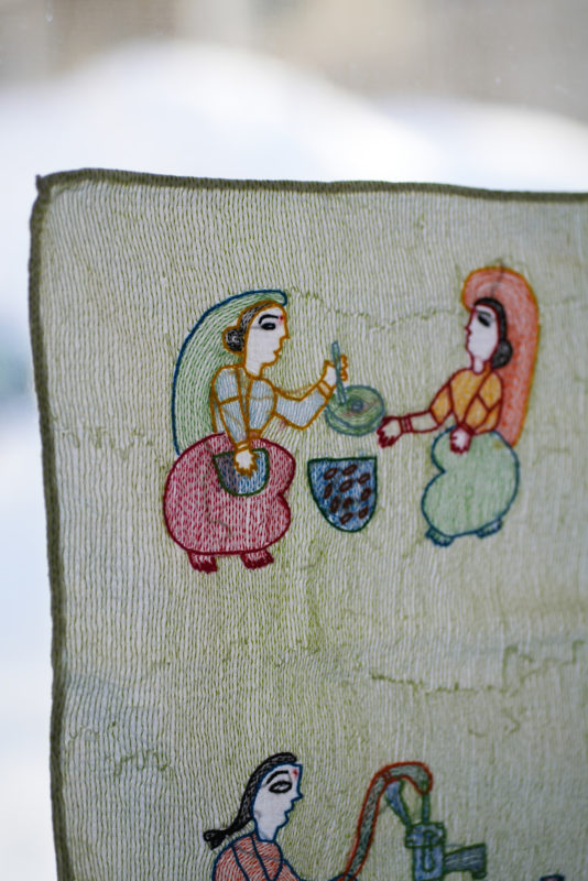 アルチャナ・クマーリさんの手がける刺繍布と、