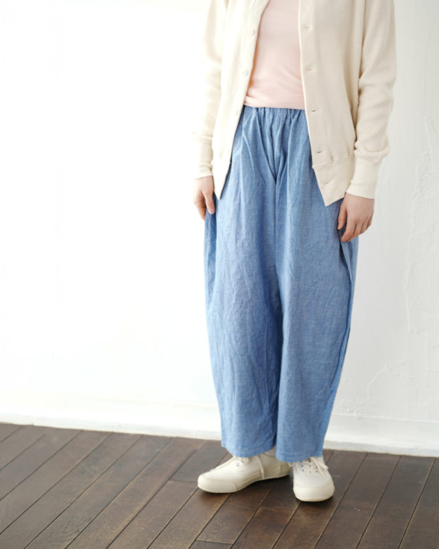 Bottoms インディゴピンヘッドカーブパンツ〈ライトブルー〉
