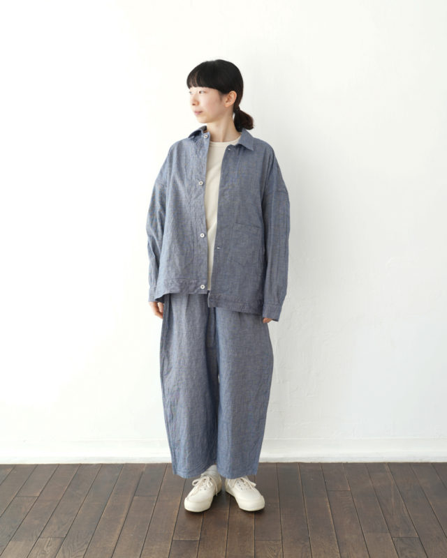 こちらはカバーオールとパンツのセットアップ。