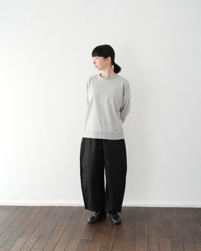 パンツが黒だと同じグレーのトップスでもきりっとした印象。