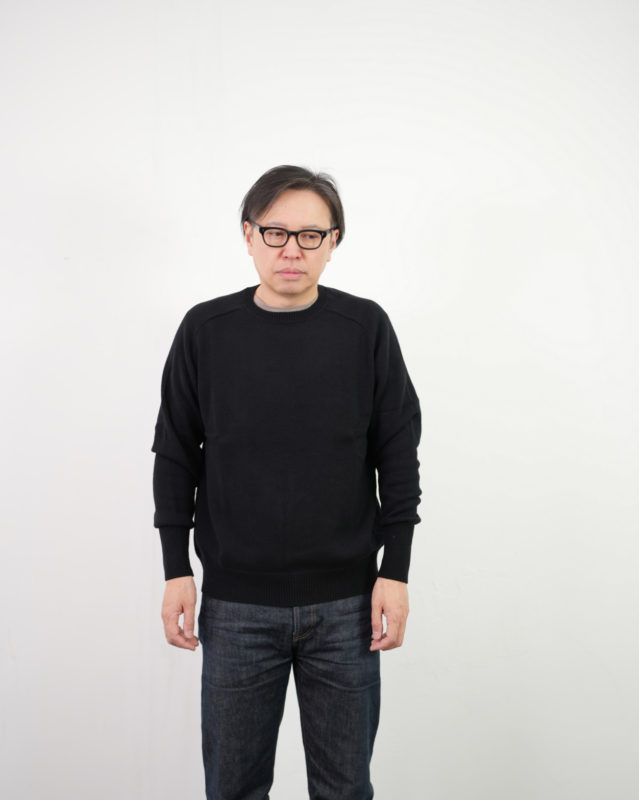 モデル身長175cm/size4・black 黒は単色で構成されているため、引き締まった着用感です。