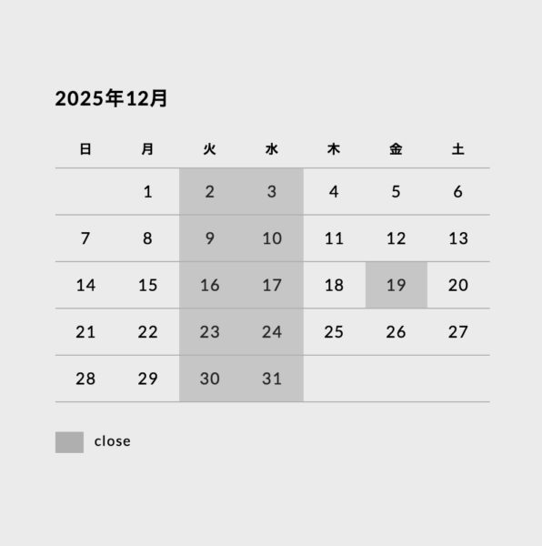 ◯12月のお休み